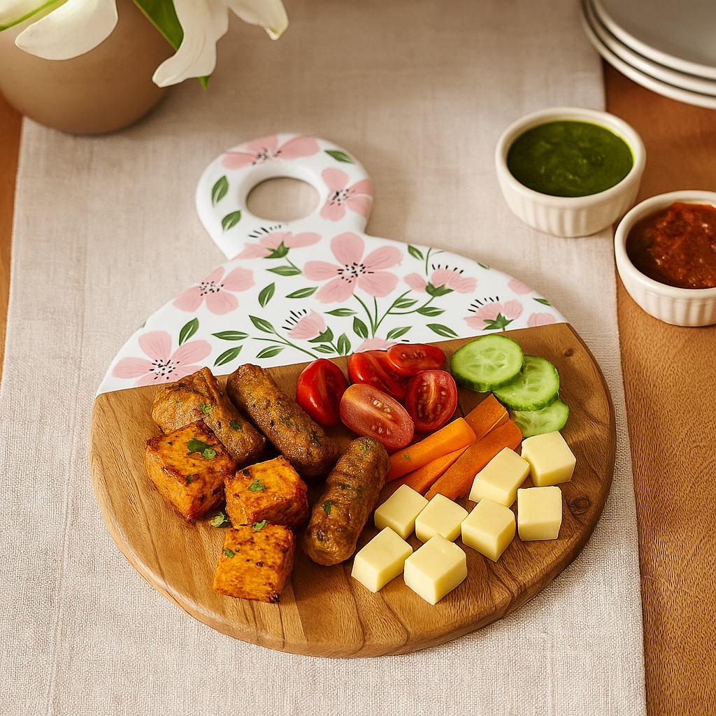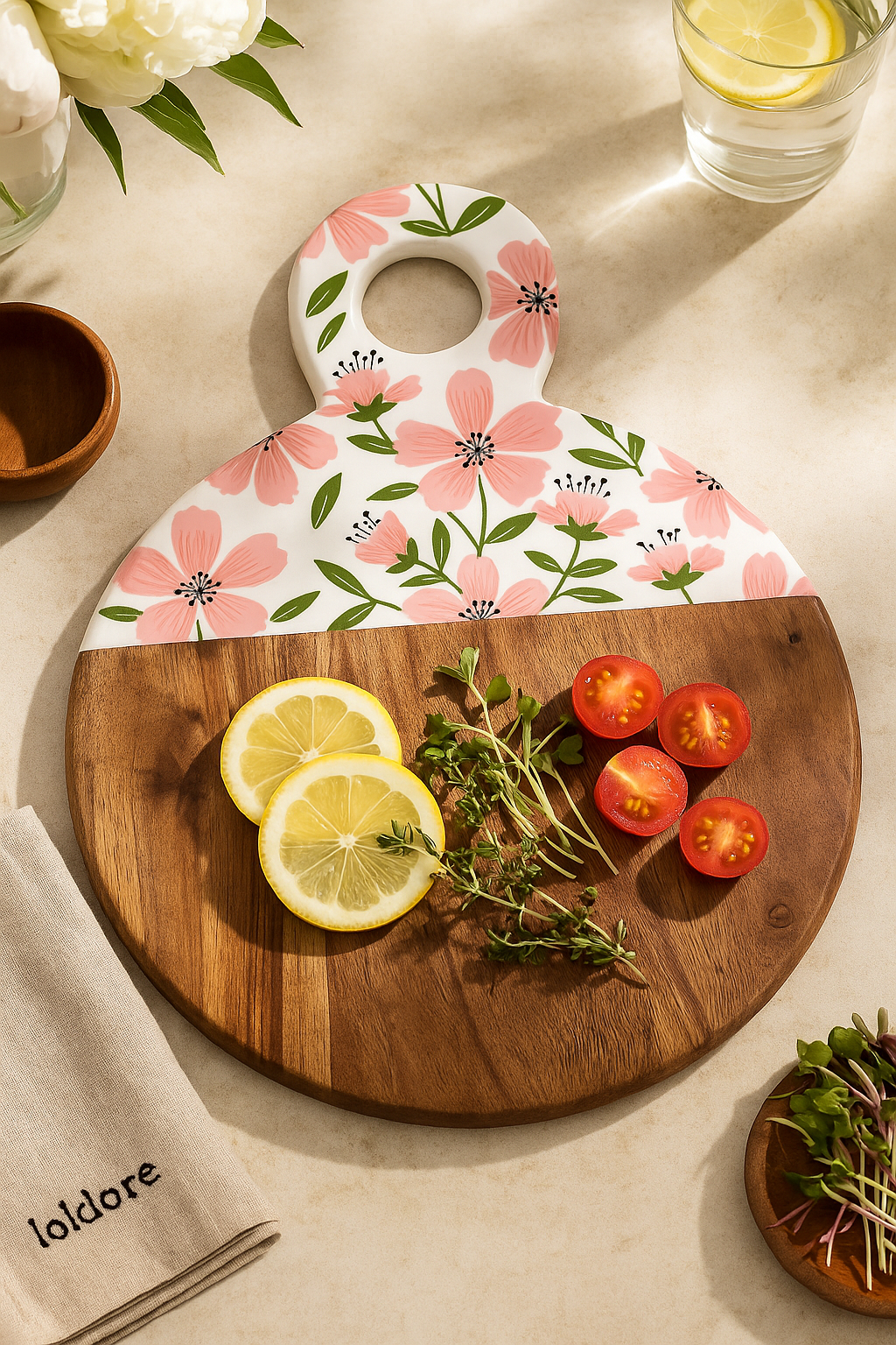 Enhance your kitchen's eco-friendly appeal with the Gulbahar chopping board - large from Loklore. Crafted from sustainably sourced wood, this board embodies our commitment to sustainability while offering a durable surface for all your chopping needs. Its ample size is perfect for meal prepping, and the beautiful grain pattern adds a touch of elegance to any kitchen.