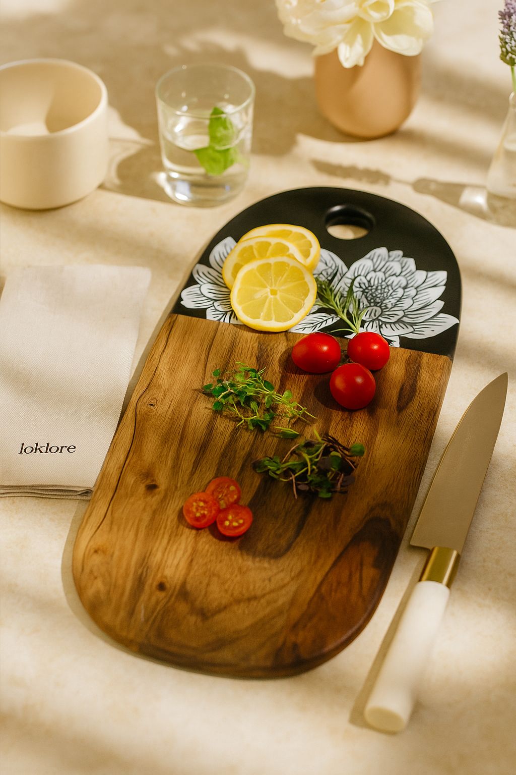 Embrace sustainable living with Loklore and enhance your kitchen with the Padma Chopping Board - Medium. Crafted from eco-friendly materials, this beautifully designed board offers durability without compromising on style. Perfectly sized for everyday use, it ensures a seamless cooking experience while contributing to a greener planet. At Loklore, we prioritize quality and sustainability, making the Padma Chopping Board a perfect choice for the conscious consumer.
