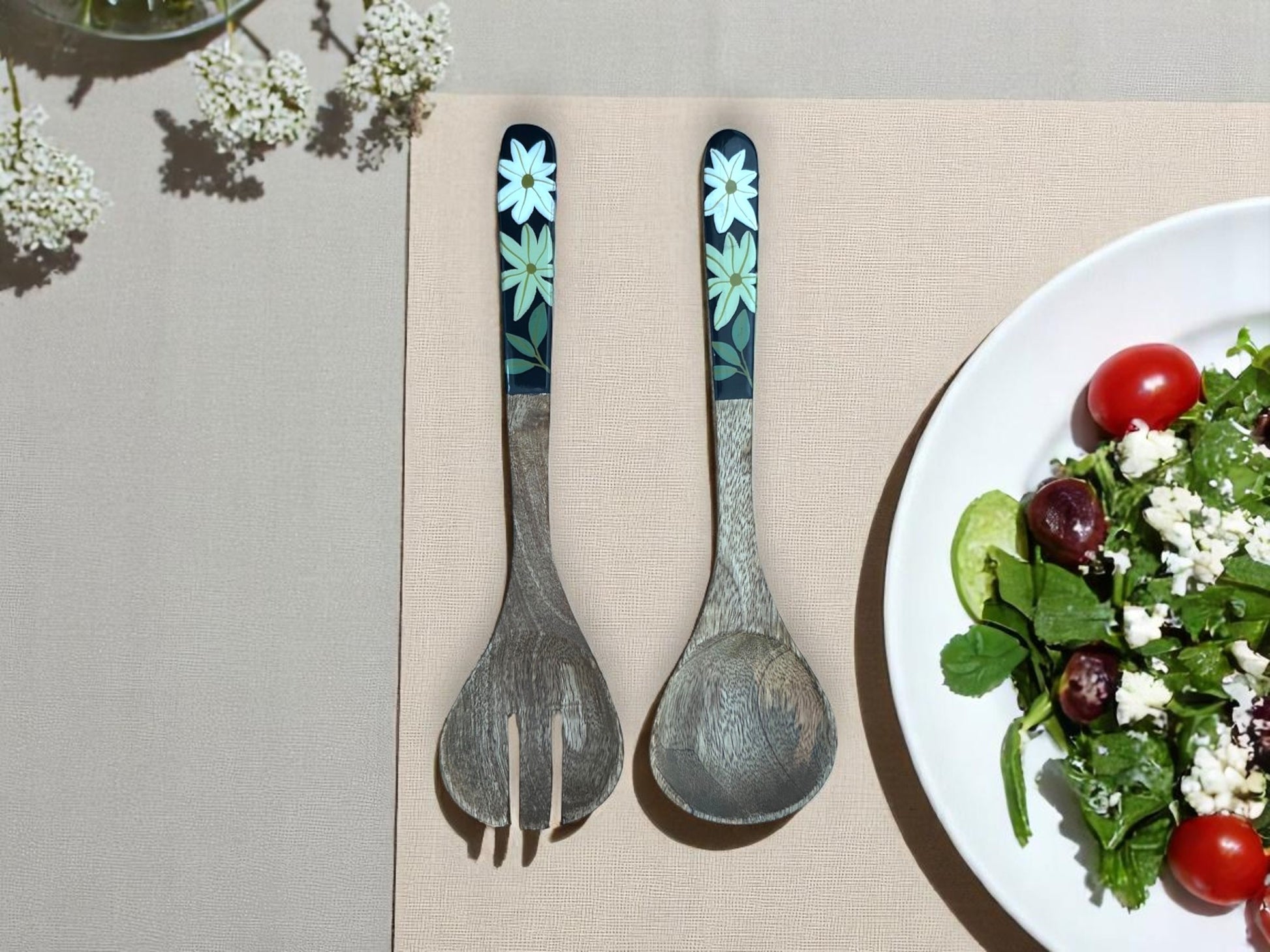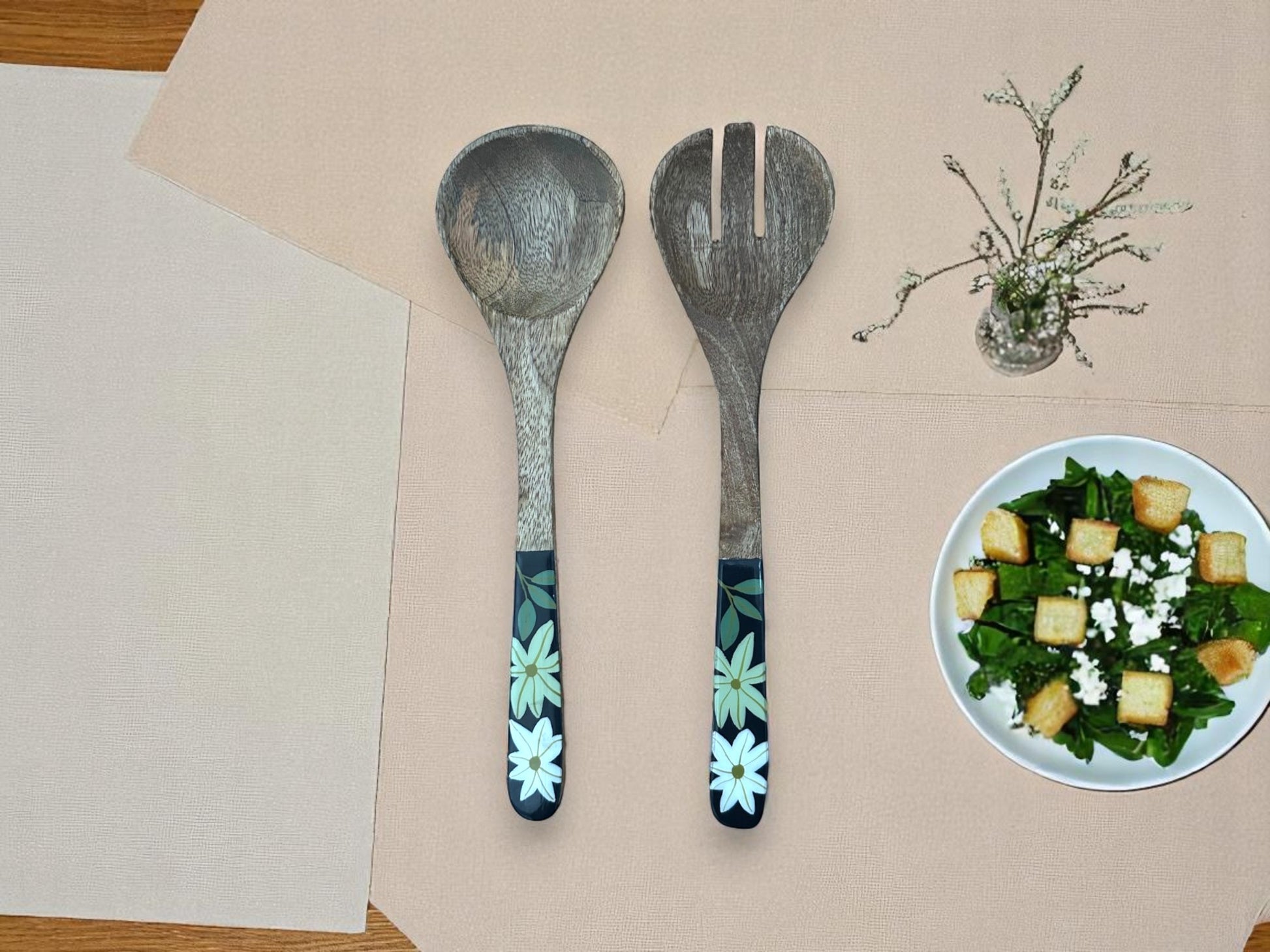 Embrace sustainable living with Loklore by adding the elegant Tarang wooden salad server set to your dining essentials. Inspired by the gentle waves and rhythmic flow of nature, the Tarang Wooden Salad Server Set brings a sense of fluidity and harmony to your dining table. Crafted from high-quality mango wood, this set of two features delicate floral patterns that echo the beauty of blooming gardens and flowing rivers. Designed for both aesthetics and functionality, these servers elevate your serving experience with effortless grace.